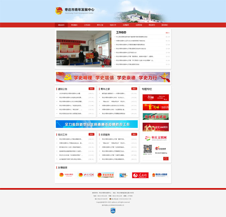 棗莊市青年發(fā)展中心的前身為棗莊市團(tuán)校,成立于1981年,是一所以培養(yǎng)共青團(tuán)干部和青年人才為主業(yè)的青年干部培訓(xùn)學(xué)校。坐落于棗莊市薛城區(qū)泰山路,占地20余畝,建筑面積12000平方米。 建校以來,在上級(jí)黨團(tuán)組織的關(guān)心和支持下,我們始終堅(jiān)持正確的辦學(xué)方向,以培養(yǎng)具有較高理論素養(yǎng)和工作能力的青年人才為己任,銳意創(chuàng)新、積極進(jìn)取,全面落實(shí)服務(wù)大局、服務(wù)社會(huì)、服務(wù)青少年的各項(xiàng)任務(wù);緊密結(jié)合廣大團(tuán)員青年的學(xué)習(xí)需求,不斷創(chuàng)新培訓(xùn)模式,充分發(fā)揮陣地作用,創(chuàng)造性地組織開展了形式新穎、內(nèi)容豐富的培訓(xùn)活動(dòng);采取長(zhǎng)短結(jié)合、內(nèi)外結(jié)合、與經(jīng)濟(jì)發(fā)達(dá)地區(qū)聯(lián)合等多種形式,不斷拓寬辦學(xué)領(lǐng)域,擴(kuò)大辦學(xué)規(guī)模,提高辦學(xué)質(zhì)量,先后舉辦了職業(yè)中專班、軍地人才班和成人學(xué)歷班;不斷豐富工作內(nèi)容,提升培訓(xùn)質(zhì)量,逐步形成了以團(tuán)干部培訓(xùn)為主,青少年研究、青少年素質(zhì)拓展、青年志愿者培訓(xùn)、成人學(xué)歷教育,“四位一體”的辦學(xué)格局。 2003年3月團(tuán)市委在市團(tuán)校設(shè)立“棗莊市青春創(chuàng)業(yè)指導(dǎo)中心”;2004年9月,棗莊電大市團(tuán)校分校成立;2005年6月團(tuán)市委在市團(tuán)校設(shè)立全市首批“學(xué)士后流動(dòng)站”;2010年初在北京大學(xué)的幫助與指導(dǎo)下,市團(tuán)校成立了青少年素質(zhì)拓展培訓(xùn)基地。同時(shí),市團(tuán)校積極響應(yīng)市委、市政府號(hào)召,圍繞中心、服務(wù)大局,充分發(fā)揮自身優(yōu)勢(shì),配合市、區(qū)農(nóng)業(yè)局、勞動(dòng)局,先后承擔(dān)了農(nóng)村勞動(dòng)力轉(zhuǎn)移、“陽(yáng)光工程”培訓(xùn)班。 三十多年來,市團(tuán)校完成了25000余名團(tuán)干部和3000余名大中專學(xué)生的教學(xué)培訓(xùn)任務(wù),向蘇州、上海、煙臺(tái)等經(jīng)濟(jì)發(fā)達(dá)地區(qū)輸送高素質(zhì)的青年勞務(wù)人員近1000人,累計(jì)培訓(xùn)各類青年農(nóng)民1500人次,開設(shè)中央電大“開放教育”本、專科專業(yè)20多個(gè),學(xué)員近1000人,開展素質(zhì)拓展培訓(xùn)5000余人,成功舉辦兩屆全市青年攀巖比賽,受到了社會(huì)各界的一致好評(píng)。 2017年3月,棗莊市“青年之家”在市團(tuán)校建成投入運(yùn)行,設(shè)置法律維權(quán)、心理咨詢、婚戀交友、志愿服務(wù)、傳統(tǒng)文化教育和素質(zhì)拓展六大模塊,是棗莊共青團(tuán)面向社會(huì)、面向青少年的多功能、復(fù)合型、綜合性服務(wù)平臺(tái),是團(tuán)組織使用管理的公益性、綜合性服務(wù)場(chǎng)所。 2017年8月,棗莊市團(tuán)校更名為棗莊市青年發(fā)展中心。展望未來,我們信心百倍,全體教職工將繼續(xù)圍繞黨政中心工作大局,以更加奮發(fā)有為的精神狀態(tài),開拓進(jìn)取、奮力拼搏,立身自身實(shí)際,發(fā)揚(yáng)優(yōu)良傳統(tǒng),在新的征程上邁出新步伐,再上工作新臺(tái)階,再創(chuàng)事業(yè)新輝煌。